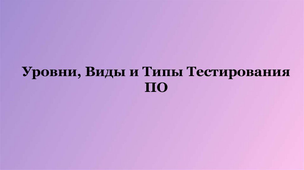 Уровни, Виды и Типы ТестированияПО