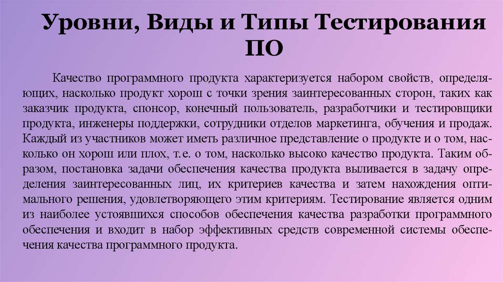 Уровни, виды и типы тестирования ПО