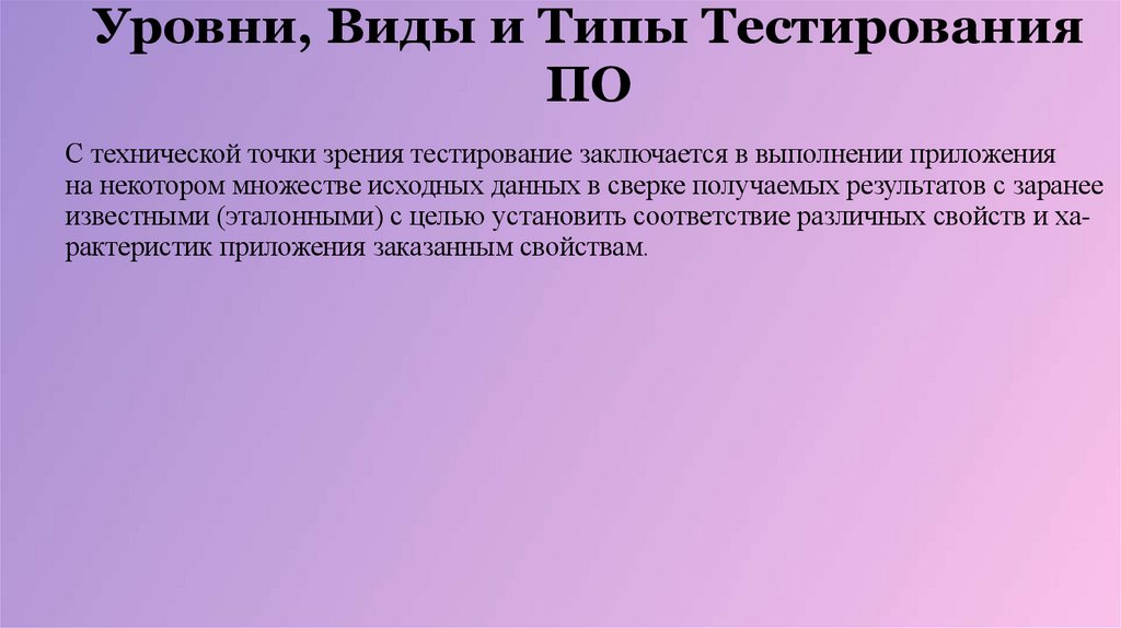 Уровни, Виды и Типы Тестирования ПОС технической точки зрения тестирование заключается в выполнении