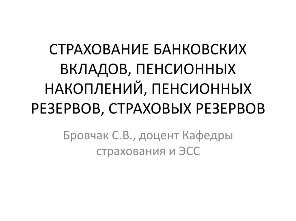 СТРАХОВАНИЕ БАНКОВСКИХВКЛАДОВ, ПЕНСИОННЫХ