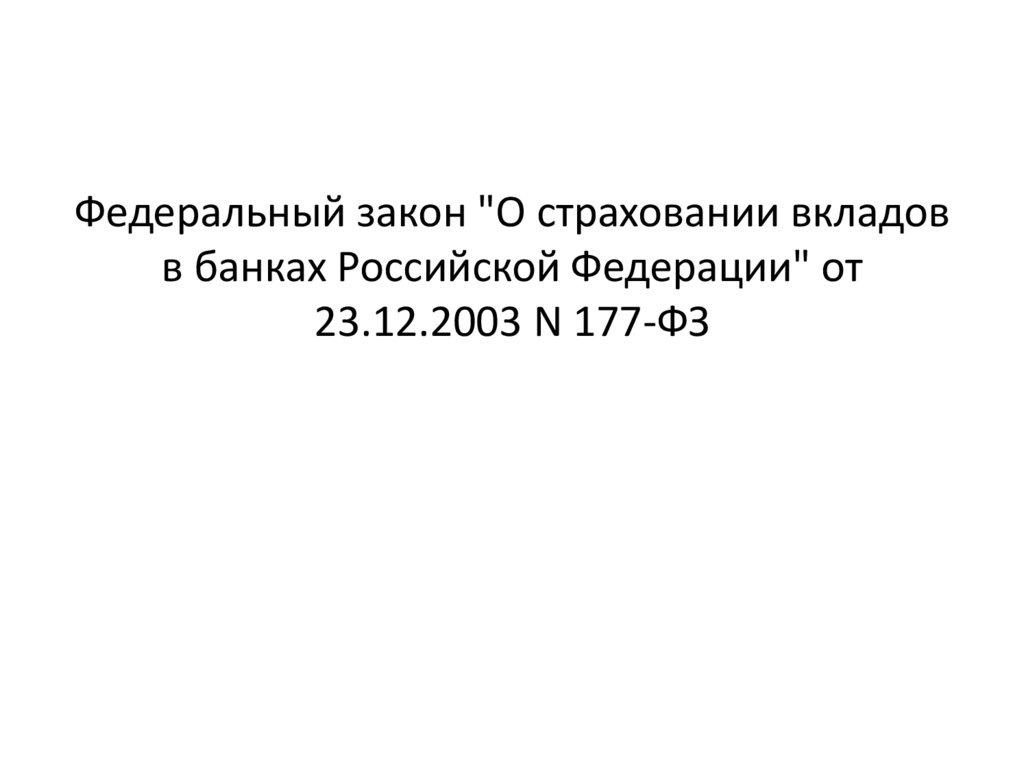 «О страховании вкладов в банках Российской Федерации» от 23 декабря 2003 года.