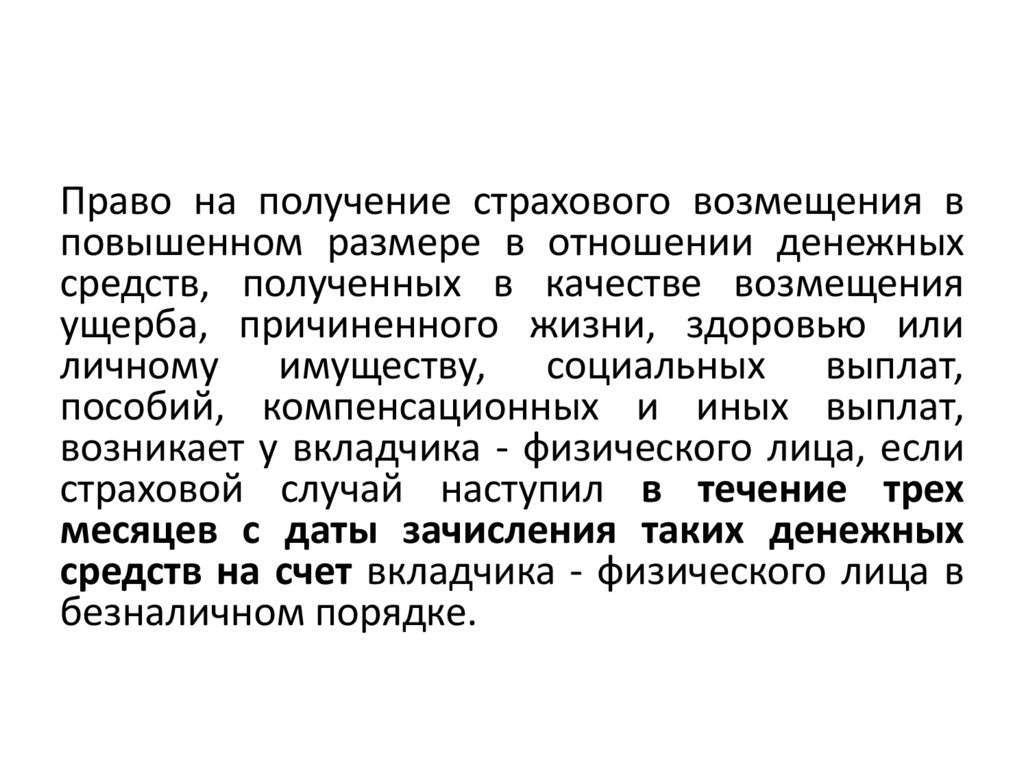 Право на получение страхового возмещения вповышенном размере в отношении денежных