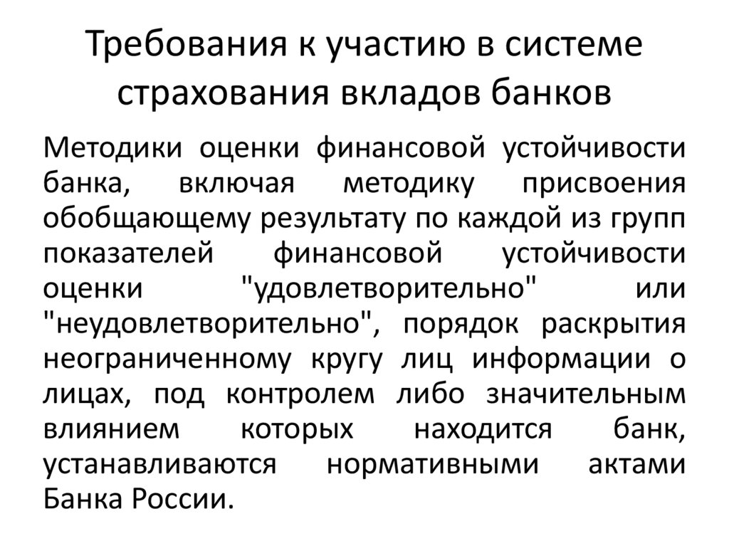 вкладчиков, повышает доверие к банковской системе, что соответствует