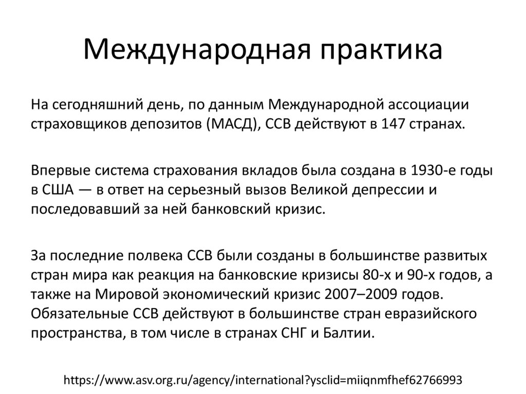 страховщиков депозитов (МАСД), ССВ действуют в 147 странах.