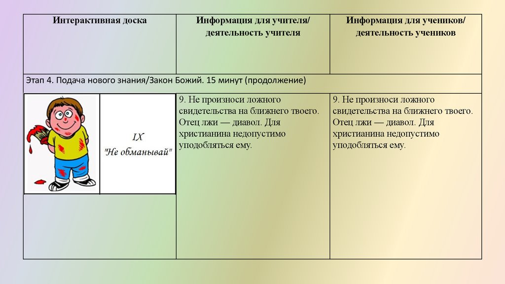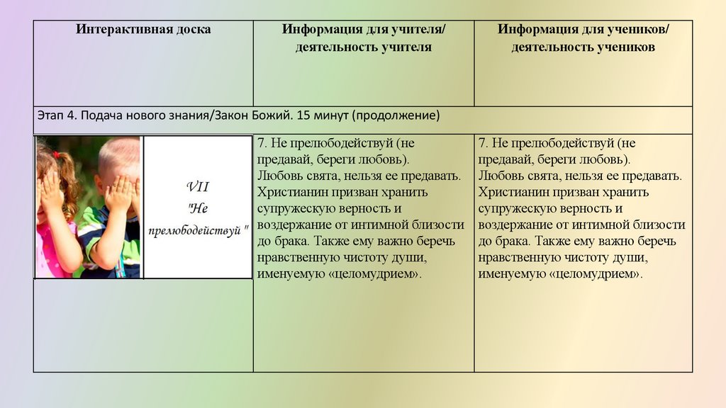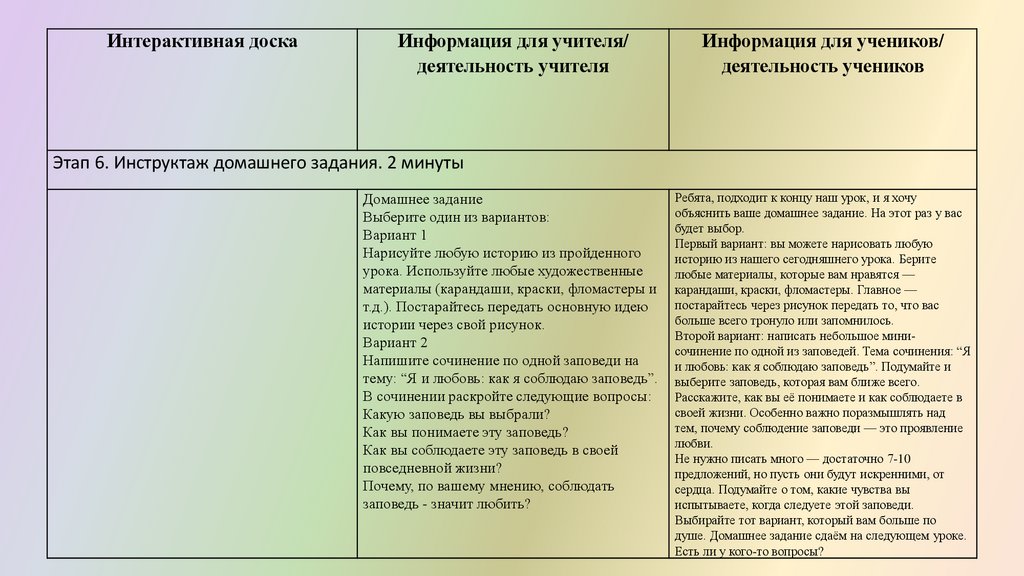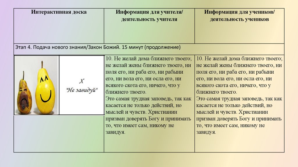 Второй вариант: написать небольшое минисочинение по одной из заповедей. Тема сочинения: “Я