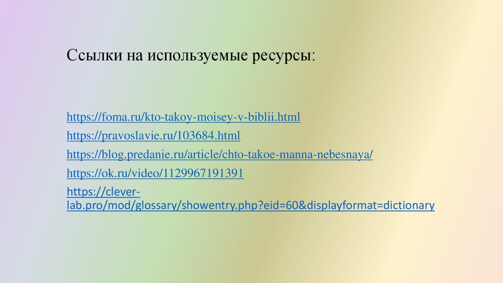 Ссылки на используемые ресурсы:https://foma.ru/kto-takoy-moisey-v-biblii.html