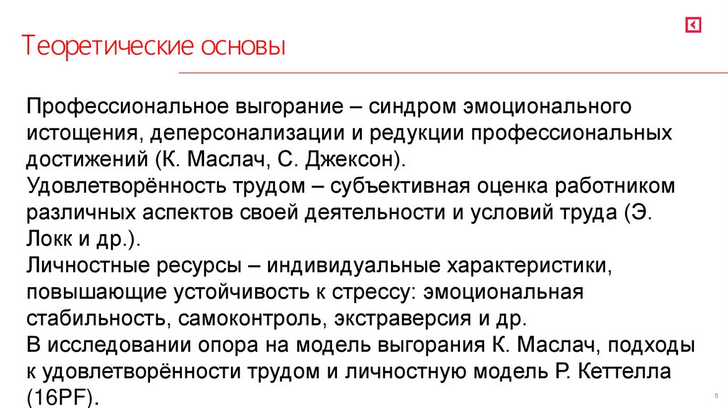 В исследовании опора на модель выгорания К. Маслач, подходы