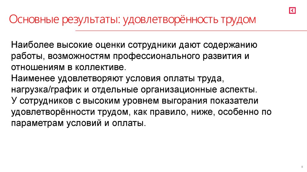 удовлетворённостью условиями труда и/или оплатой; у них чаще отмечаются
