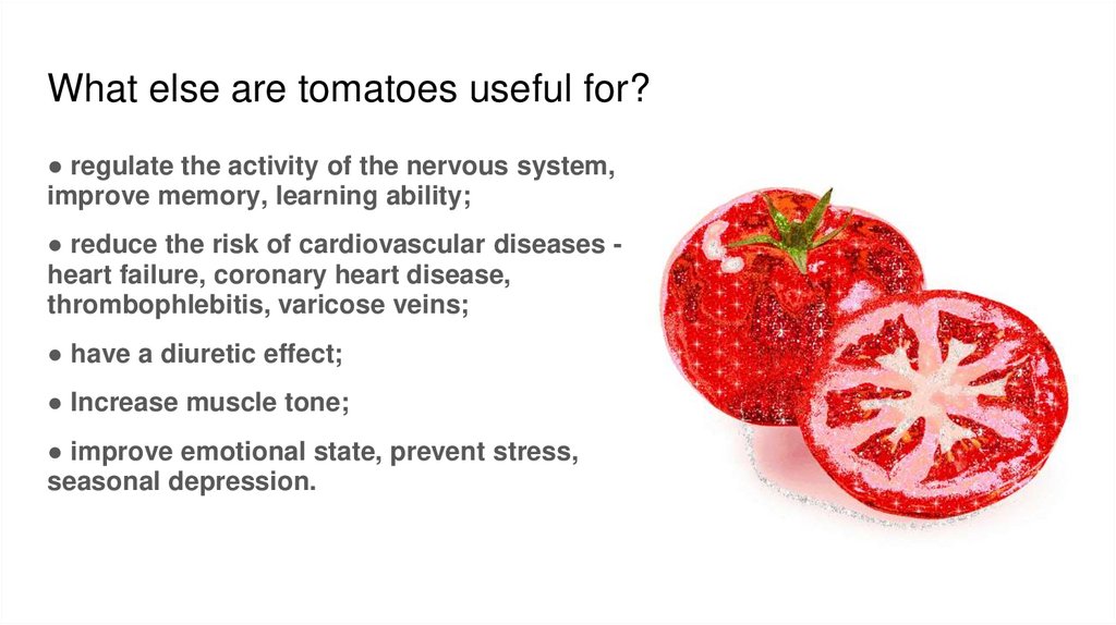 What else are tomatoes useful for?● regulate the activity of the nervous system,