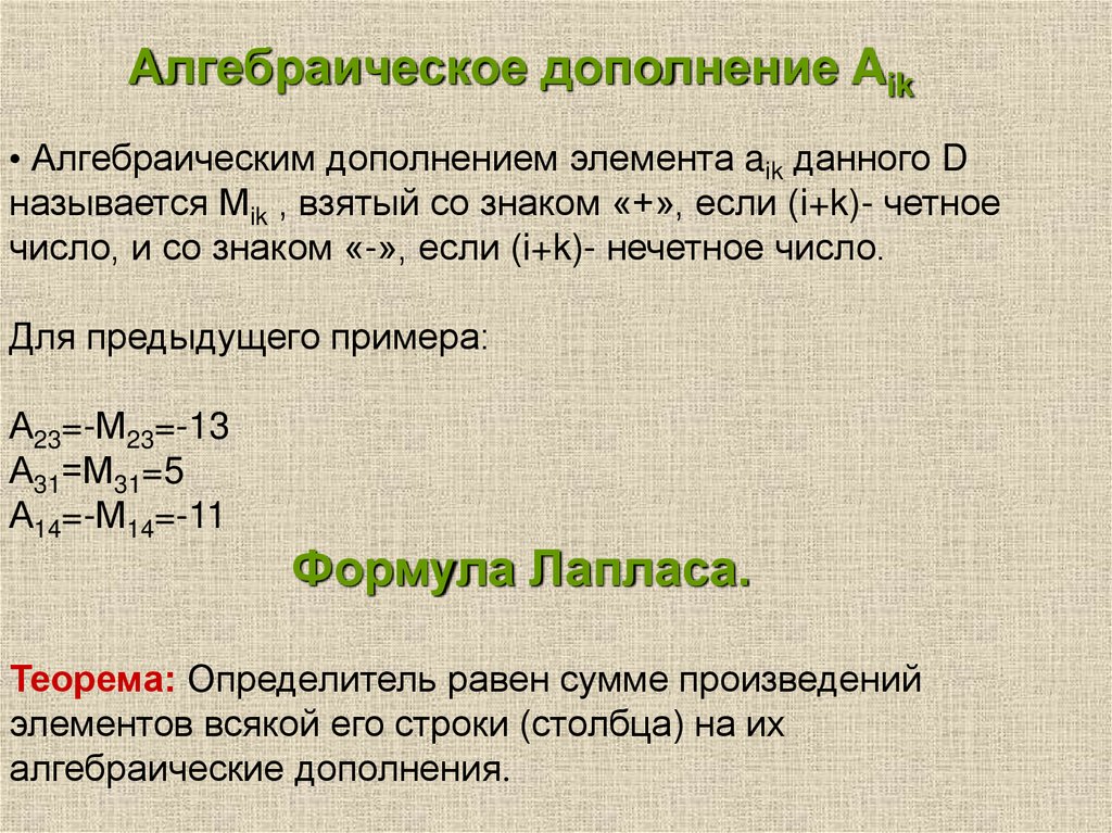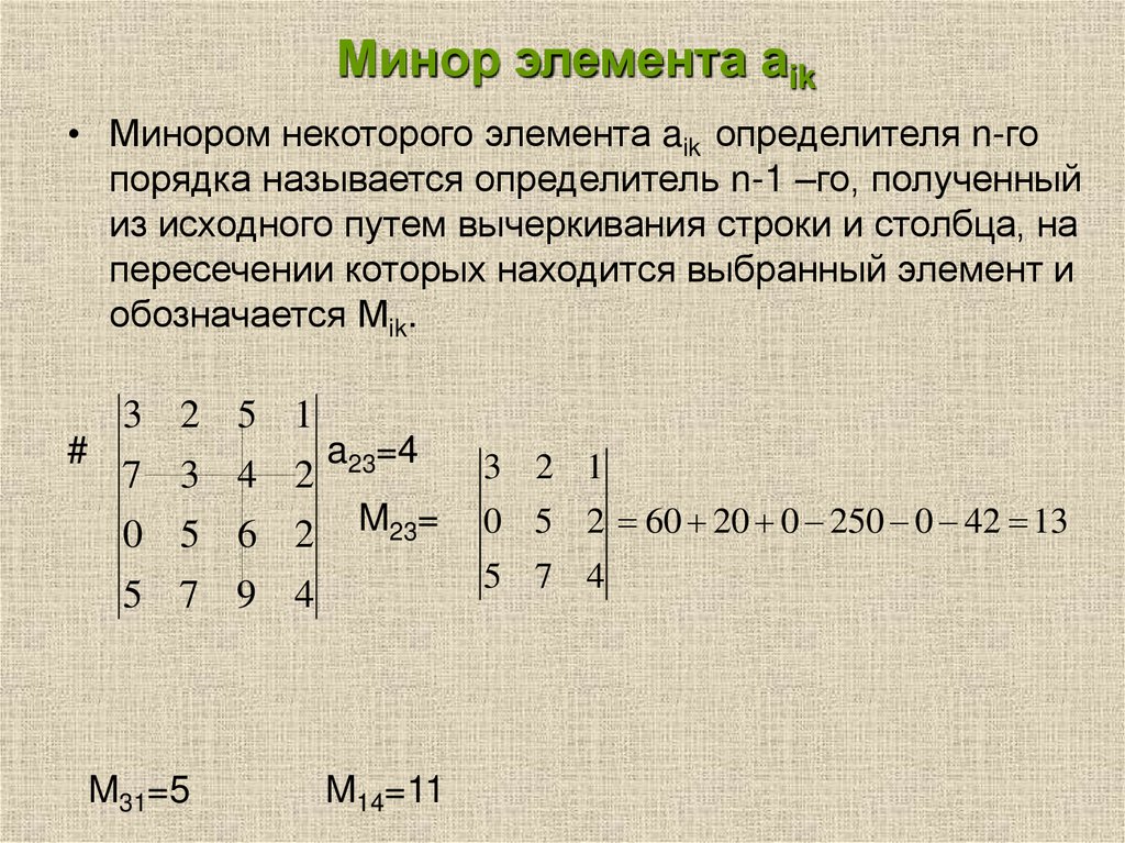 • Таким образом, элементом новой матрицы является ,