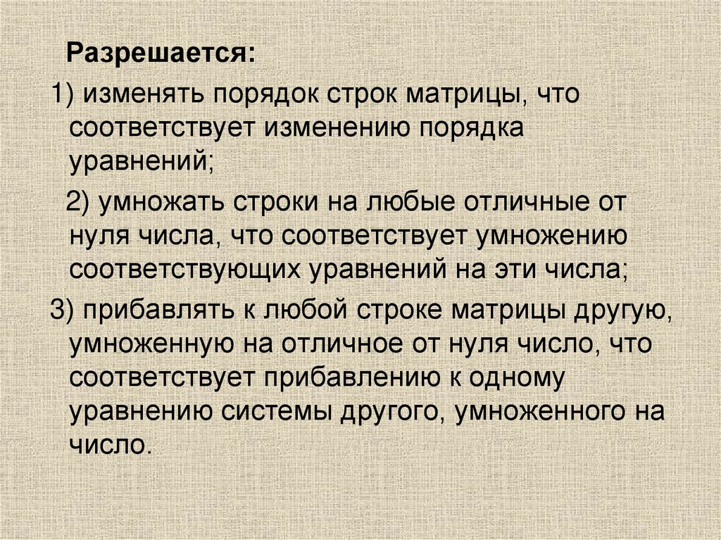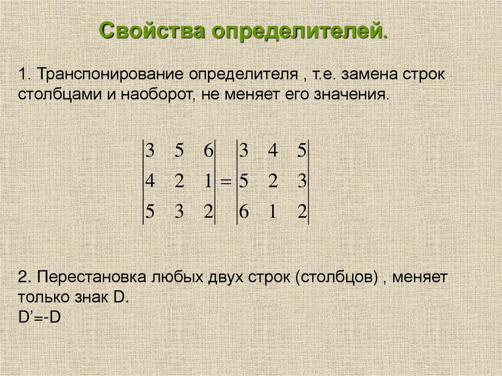 1. Перестановка местами двух параллельных рядовматрицы;