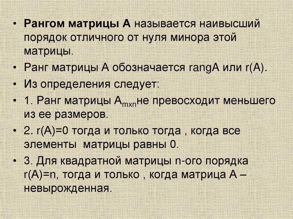 n называют матрицей n – го порядка.