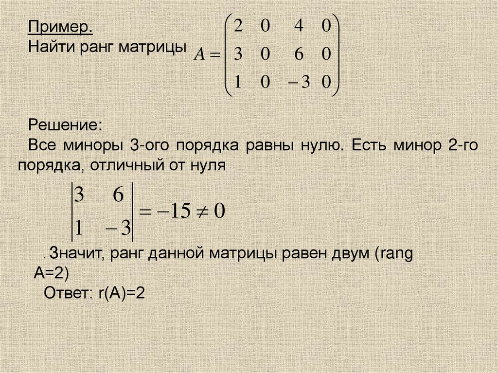 преобразований найдем ее ранг.