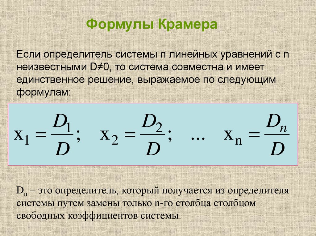 определитель системы, т.е. det А=0, что