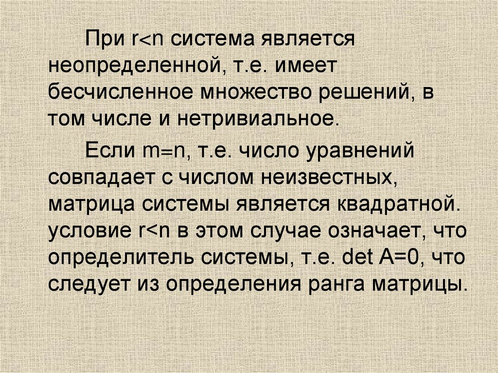 При r<n система являетсянеопределенной, т.е. имеет