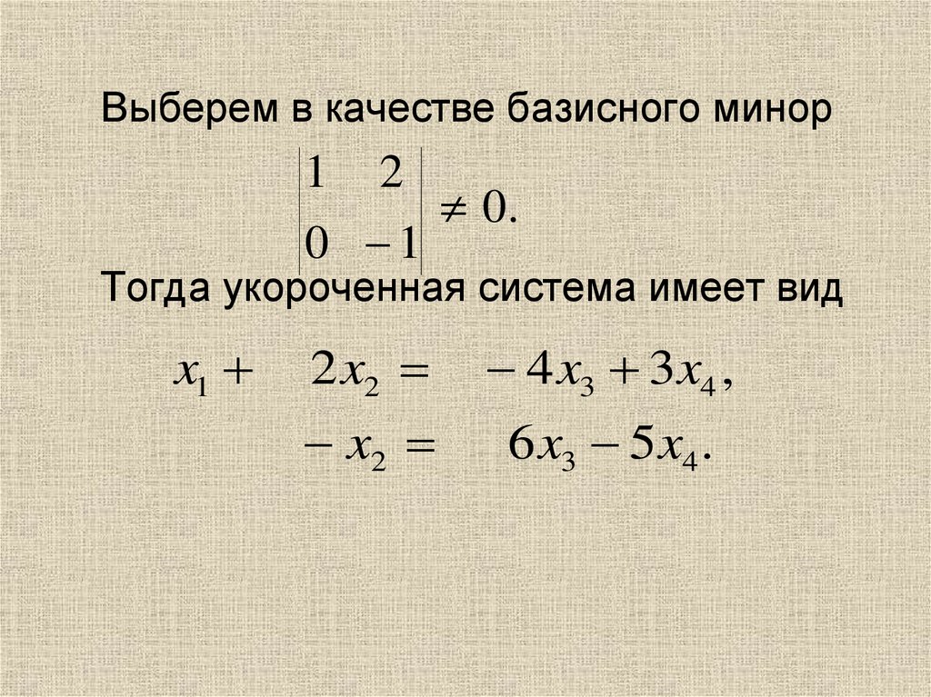 Выберем в качестве базисного минор1 2