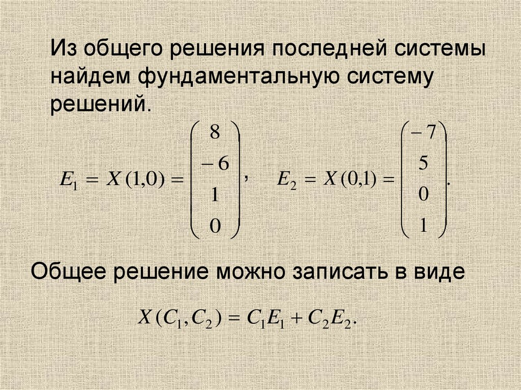 Из общего решения последней системынайдем фундаментальную систему