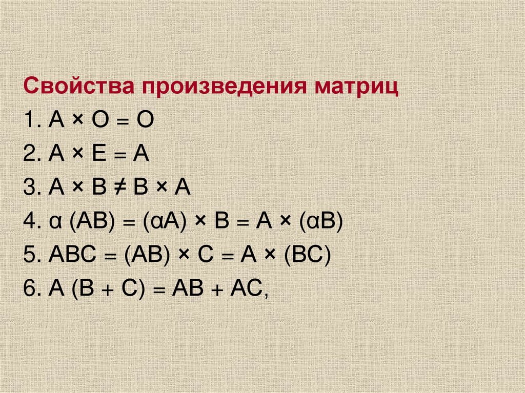 • При умножении матрицы на число, умножаются