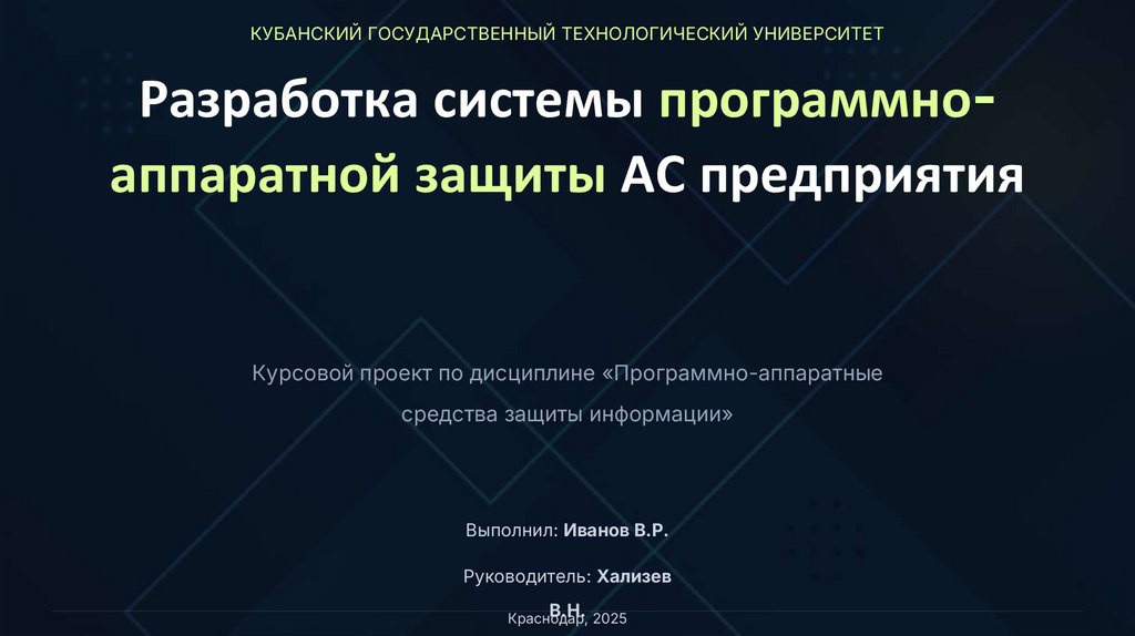 КУБАНСКИЙ ГОСУДАРСТВЕННЫЙ ТЕХНОЛОГИЧЕСКИЙ УНИВЕРСИТЕТРазработка системы программноаппаратной защиты АС предприятия