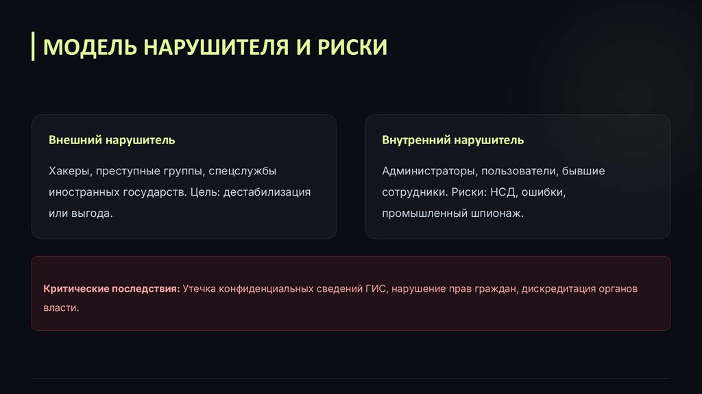 Критические последствия: Утечка конфиденциальных сведений ГИС, нарушение прав граждан, дискредитация органов