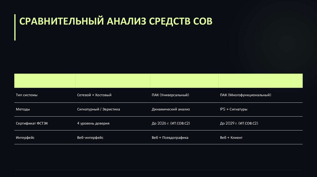 СРАВНИТЕЛЬНЫЙ АНАЛИЗ СРЕДСТВ СОВХарактеристика