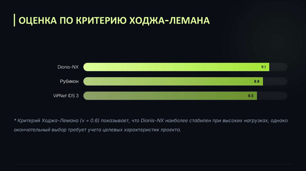 ОЦЕНКА ПО КРИТЕРИЮ ХОДЖА-ЛЕМАНА* Критерий Ходжа-Лемана (ν = 0.6) показывает, что Dionis-NX наиболее стабилен при высоких нагрузках, однако