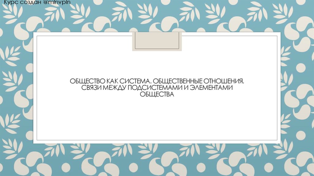 Курс создан @mlnvplnОБЩЕСТВО КАК СИСТЕМА. ОБЩЕСТВЕННЫЕ ОТНОШЕНИЯ.