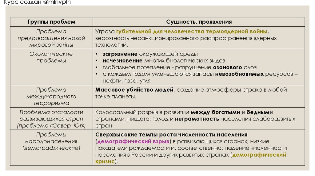 ГЛОБАЛЬНЫЕ ПРОБЛЕМЫ СОВРЕМЕННОСТИ