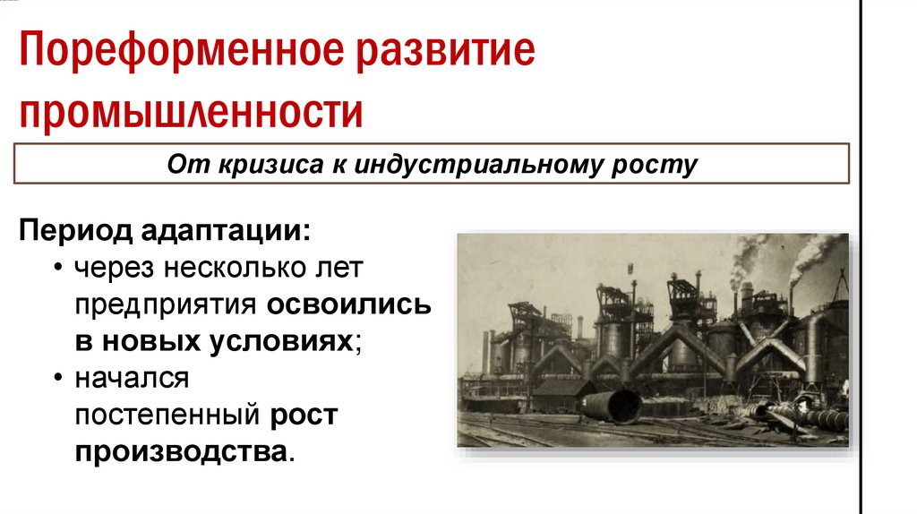перестройку промышленности.