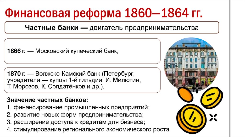 Финансовая реформа 1860—1864 гг.Частные банки — двигатель предпринимательства