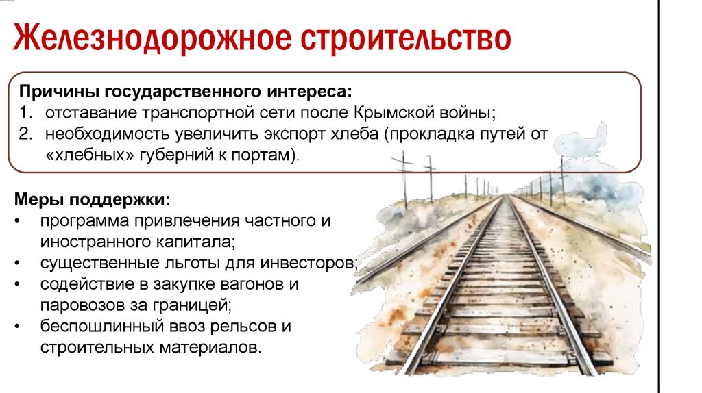 Железнодорожное строительствоПричины государственного интереса: