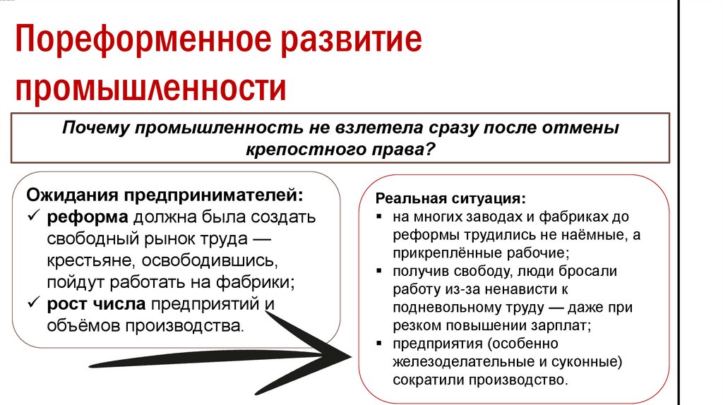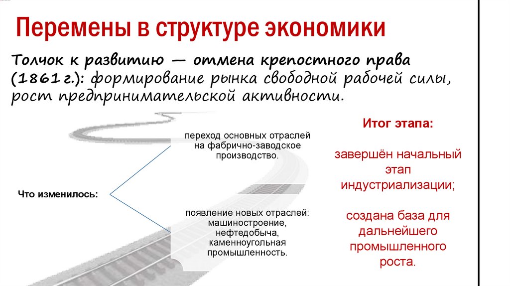 Перемены в структуре экономикиТолчок к развитию — отмена крепостного права