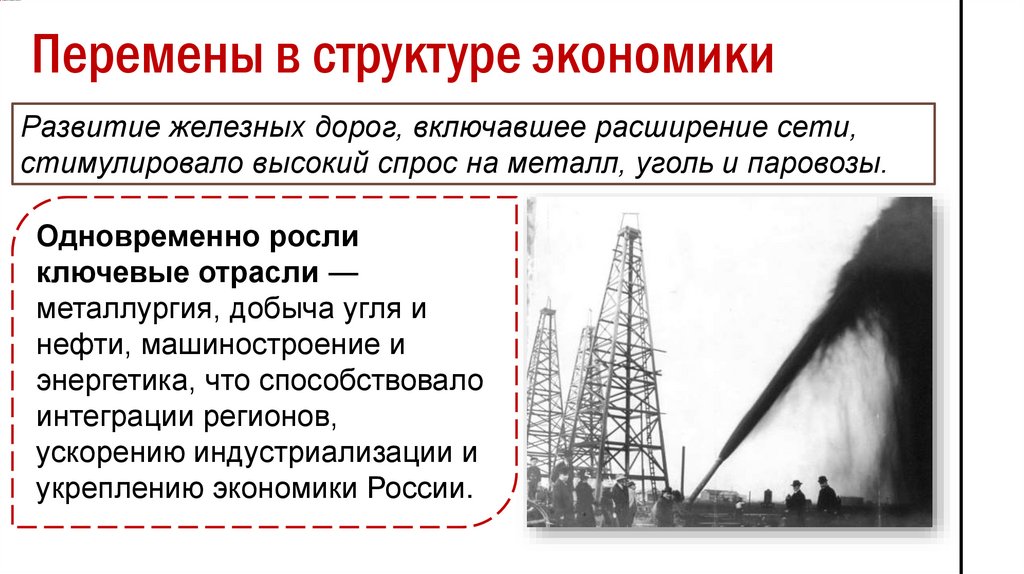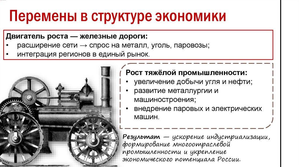 Перемены в структуре экономикиРазвитие железных дорог, включавшее расширение сети,