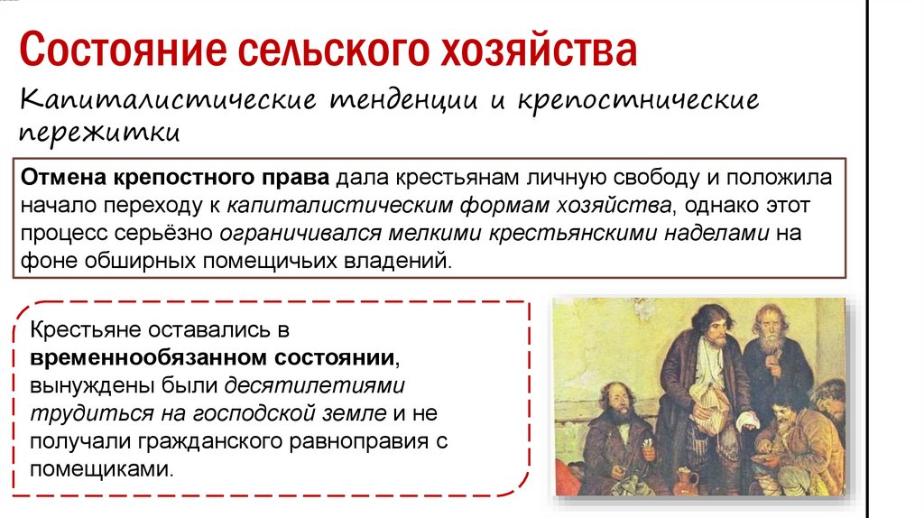 Состояние сельского хозяйстваКапиталистические тенденции и крепостнические
