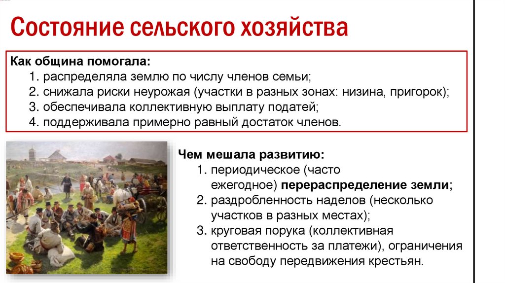 Состояние сельского хозяйстваКак община помогала: