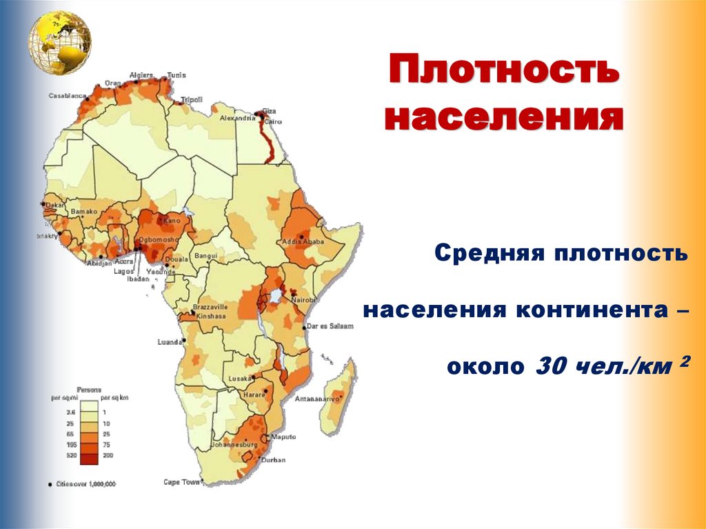 5. Численность населения Африки составляет 1,1 млрд. человек.
