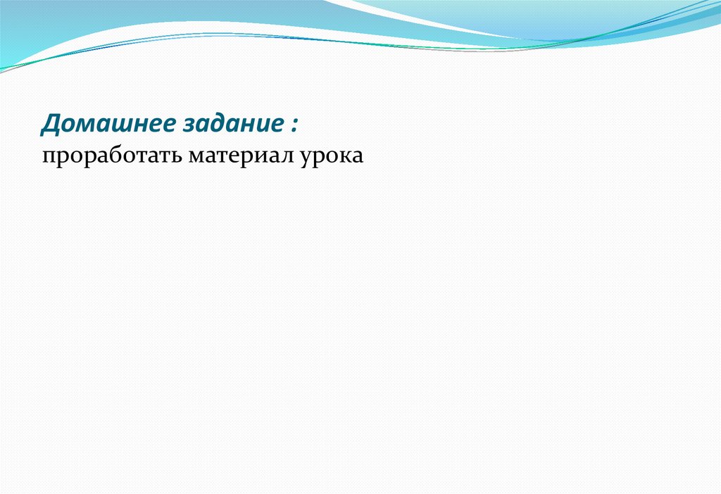 Домашнее задание :проработать материал урока