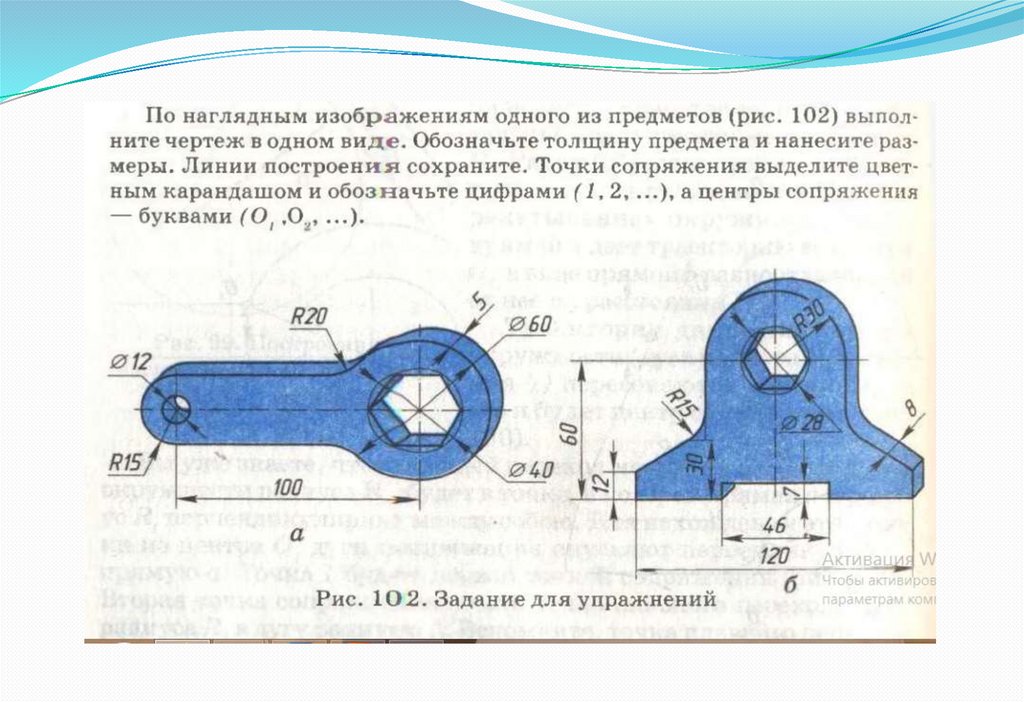 Плавный переход одной линии контура изображения к другой называютсопряжением. Все сопряжения на чертежах выполняют дугами окружностей