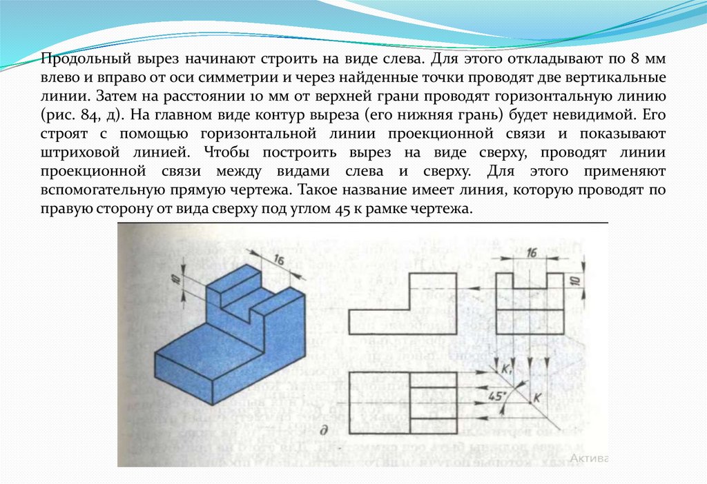штриховой линией. Чтобы построить вырез на виде сверху, проводят линии