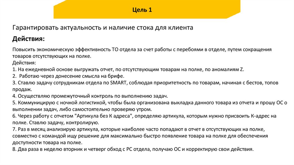 Цель 1Гарантировать актуальность и наличие стока для клиента
