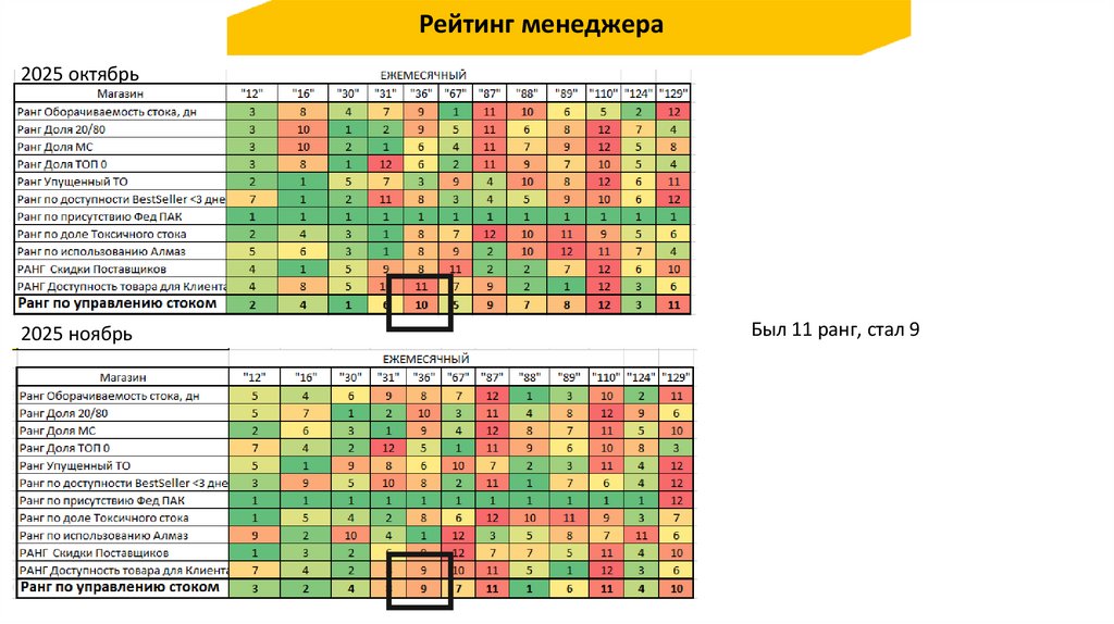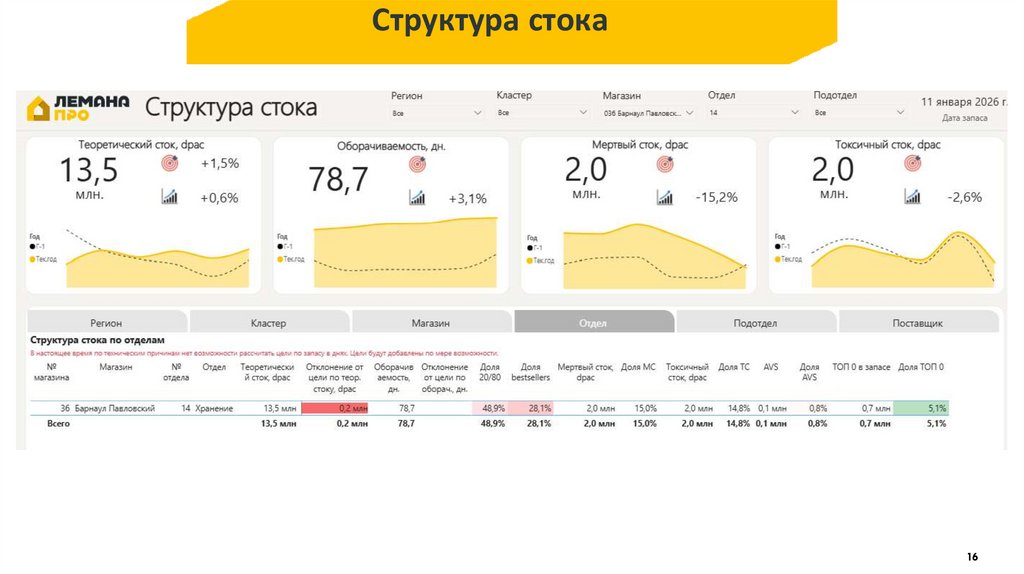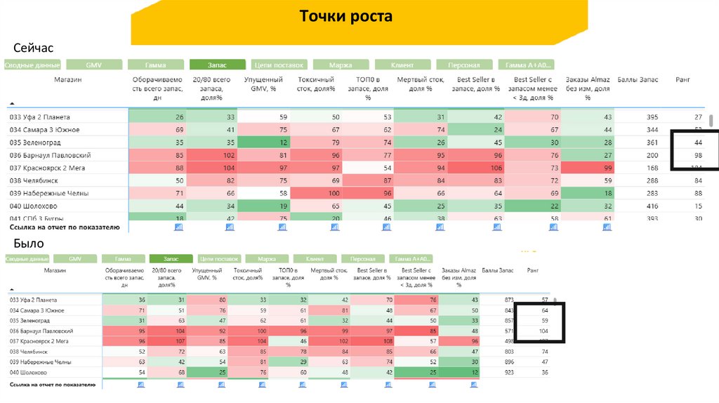 отделам в стране, ТОР0 в штуках динамика по магазину и место в стране, рейтинг по доле запаса в регионе.
