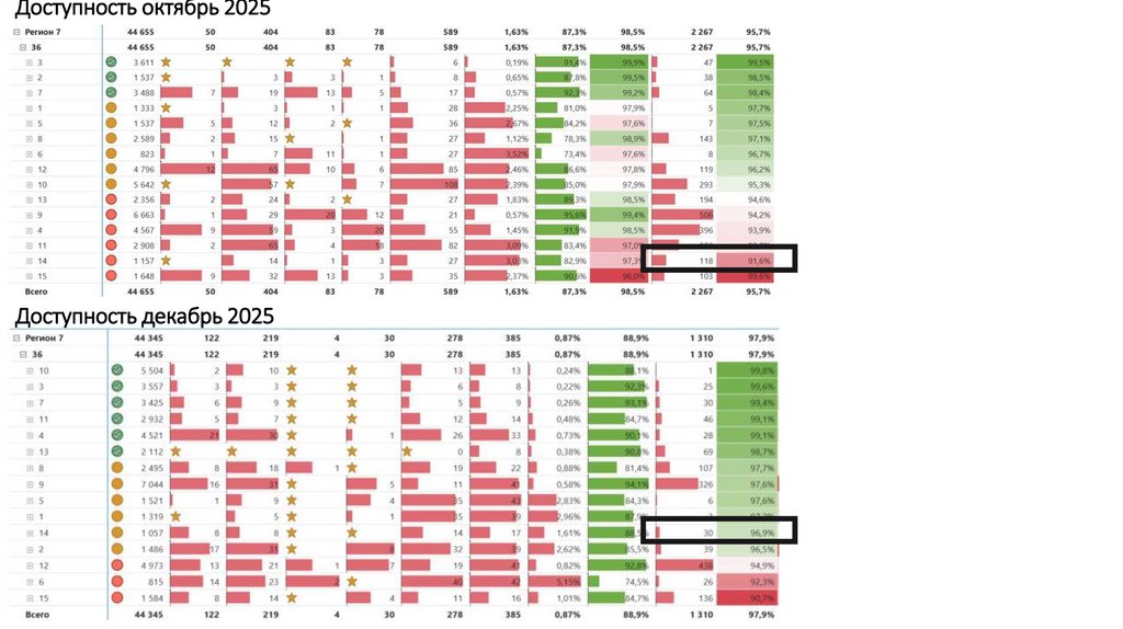 Доступность ТЗ - среднее значение за период выполнения цели 97,5%;