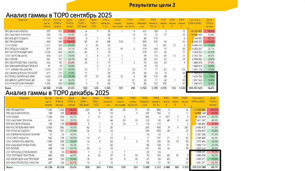 Результаты цели 2Анализ гаммы в TOP0 сентябрь 2025
