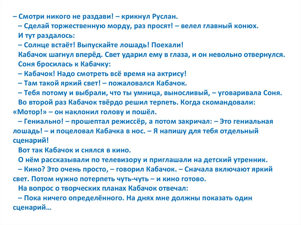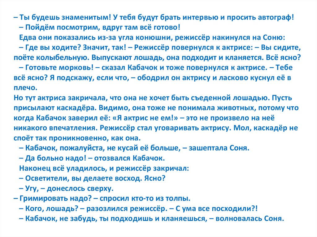 лошадь! – и поцеловал Кабачка в нос. – Я напишу для тебя отдельный