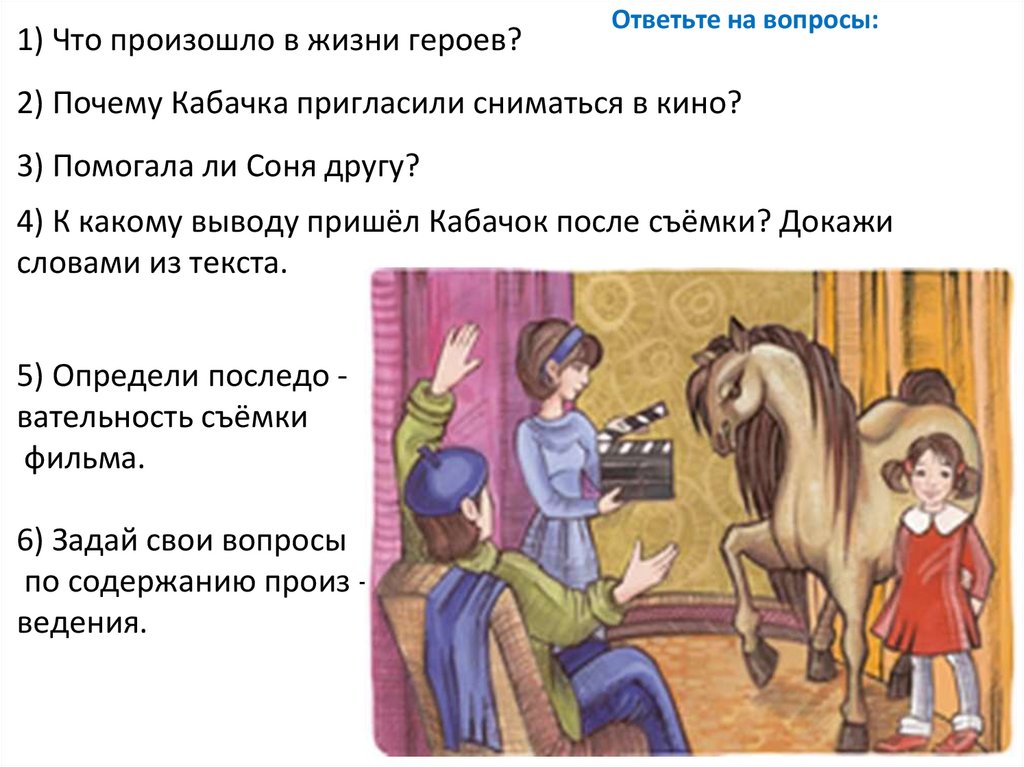 4) К какому выводу пришёл Кабачок после съёмки? Докажи