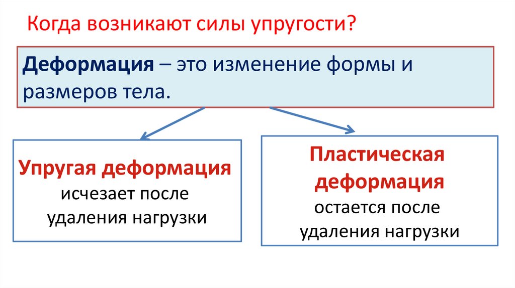 Когда возникают силы упругости?Деформация – это изменение формы и