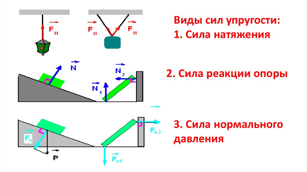 Виды сил упругости:1. Сила натяжения