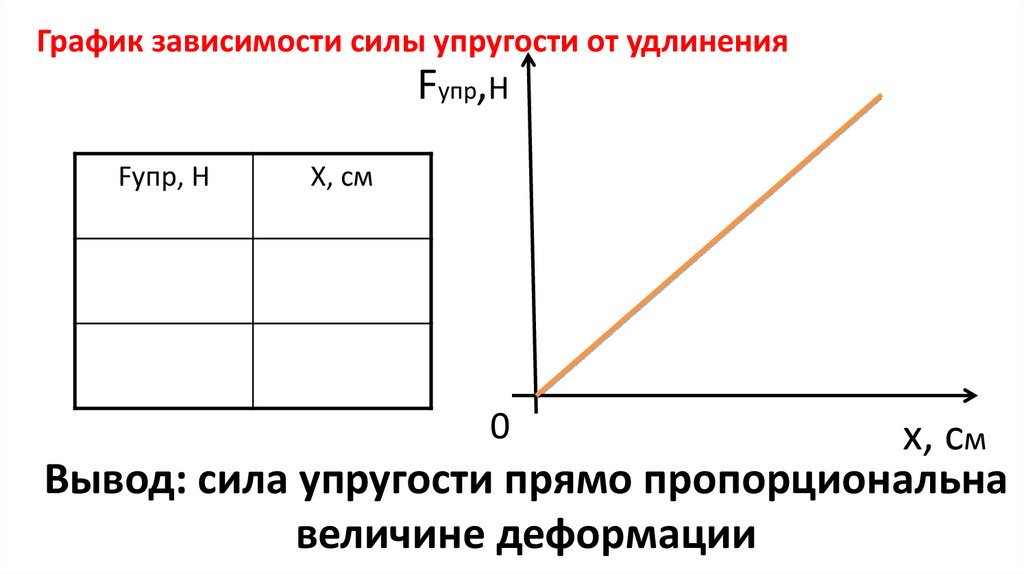 График зависимости силы упругости от удлиненияFупр,H