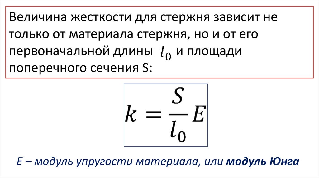 • Модуль Юнга зависит только от свойств материала ине зависит от размеров и формы тела.