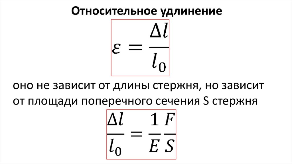 Относительное удлинениеоно не зависит от длины стержня, но зависит